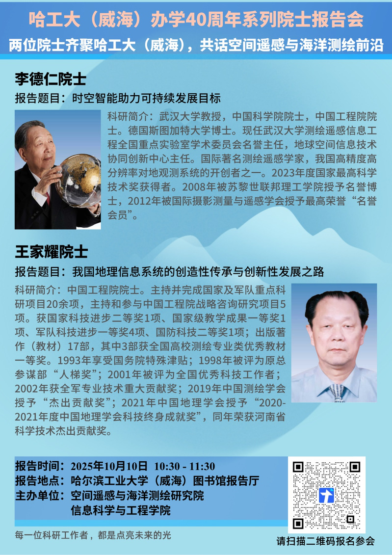 【辦學(xué)40年·院士報告】兩位院士齊聚哈工大(威海),共話空間遙感與海洋測繪前沿